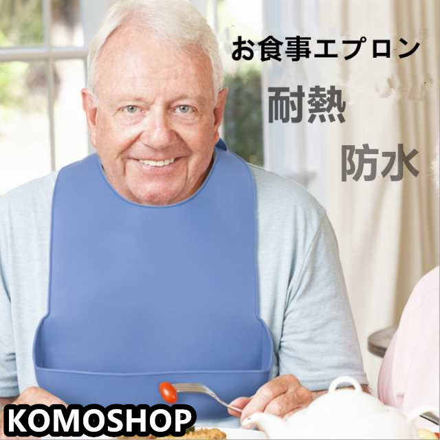 商品名:介護エプロン 食事用 防水 おしゃれ 食事用エプロン 介護 シリコン ポケット 耐熱 よだれかけ 介護用品