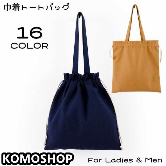 巾着トートバッグ 巾着袋 レディース メンズ カバン キャンバス 大容量 軽量 肩掛け 手提げ 折りたたみ 無地 シンプル カジ