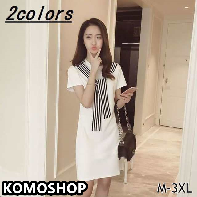 ワンピース レディース ミニ丈 膝上 ショート 半袖 ラウンドネック Aライン 大きいサイズ有 無地 白 黒 カジュアル シンプ