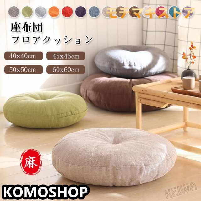 座布団 フロアクッション 丸 円形 ラウンドクッション 畳 麻 リネン チェアパッド ごろ寝クッション 丸型 和室 丸洗い 座ぶとん おしゃれ ナチュラル 北欧 シンプル無地インテリア 雑貨 40/45/50/60cm 14色展開