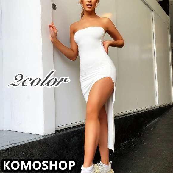 ロングワンピース ドレス レディース 女性 タイト チューブトップ スリット セクシー シンプル 無地 お洒落 可愛い きれいめ