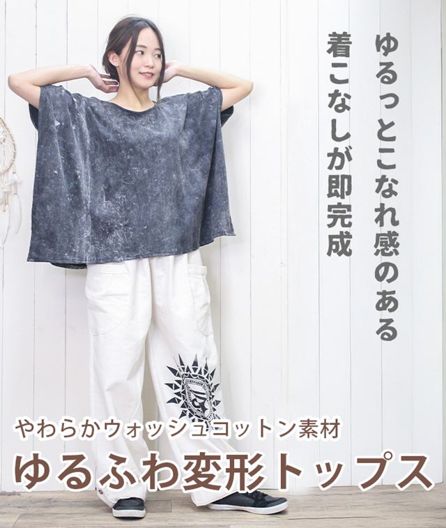【メール便OK】 ポンチョ ドルマン プルオーバー カットソー ヒッピー ボヘミアン レディース ユニセックス 【SPT】ウォッシュコットンのゆるふわ変形トップス 2025年春夏