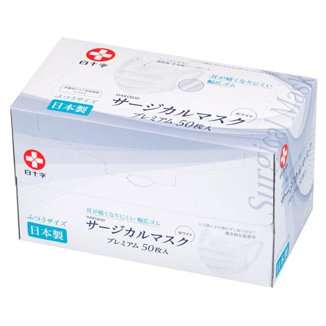 白十字 日本製 サージカルマスクプレミアム ふつう 50枚 JIS規格 医療用マスク クラスII