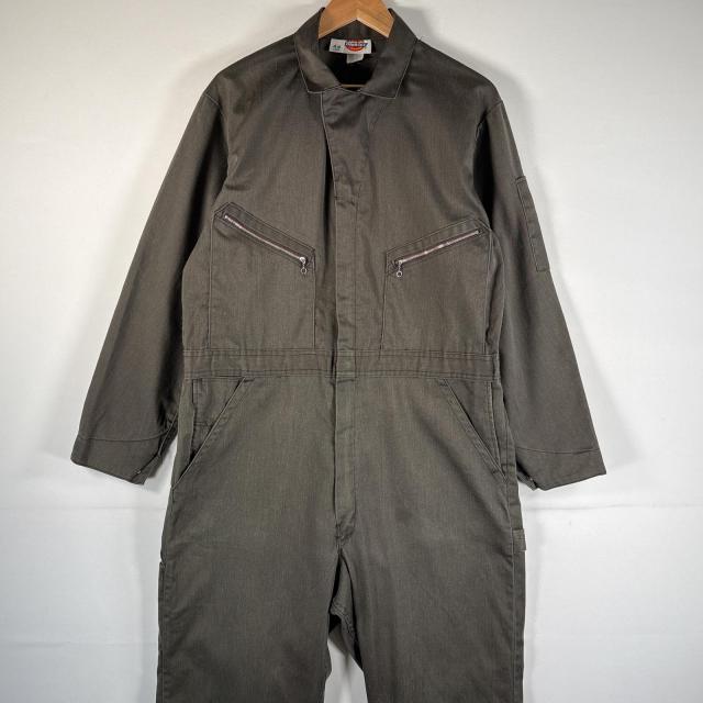 古着 90s/90年代 ディッキーズ Dickies 長袖つなぎ オールインワン 作業着 大きいサイズ スラッシュポケット 44LONG カーキ系 無地