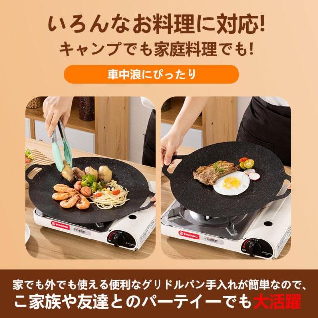 【キーワード】ガスコンロ 直火 食洗機対応 キャンプ バーベキュー アウトドア キャンプ料理 木製ハンドル贈り マルチグリドル グリドル 鉄板 シリコンハンドル アウトドア サビにくい BBQ アルミ合金 ガスコンロ 炭火 直火 熱伝導 ステーキ