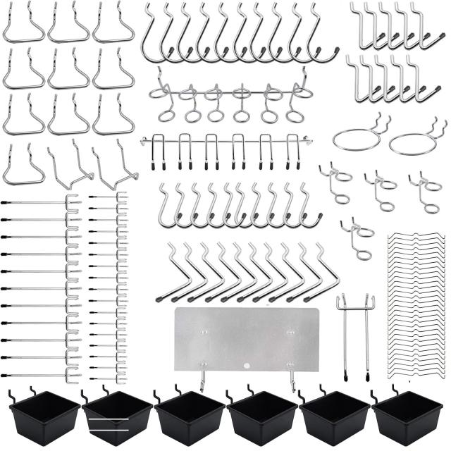 【幅広い用途】有孔ボードフックは様々な種類がありますので、ガレージ、作業台、工房、工具棚、地下室、道具屋、小売店に、キッチン、庭、デパート、学校、工場、または倉庫、またはストレージの整理、壁面の収納、飾りに役立ち、収納しやすくなります。釘板フックセットは様々なハードウェアツール、家庭用清掃ツール、絵画ツール、鍵、各種小物などをご利用いただけます