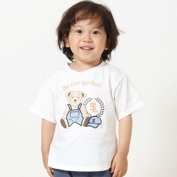 フロントに大きく入ったクマさんのモチーフが可愛い半袖Tシャツ。