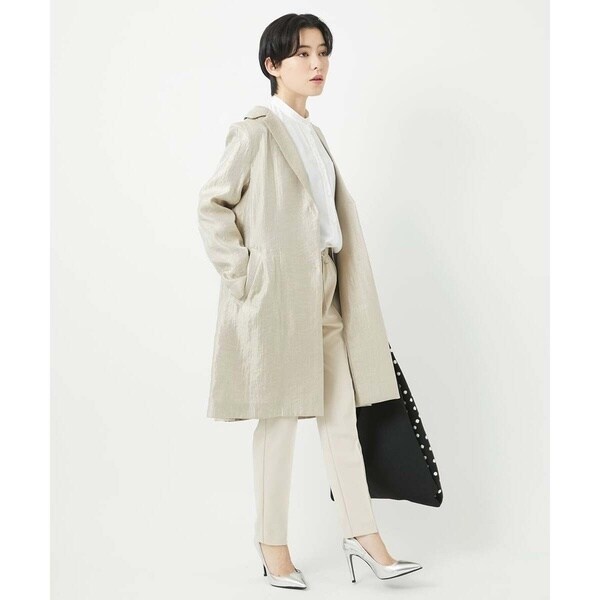落ち着きのあるメタリックな光沢感が美しい、今年ならではのトレンドコート。モダンなきらめきのある素材感を活かし、デザインはシンプルなチェスタースタイルですが、女性らしさを感じさせるデザインにしています。さらっと羽織るだけで主役級のコーデが決まる、おしゃれなアイテムです。