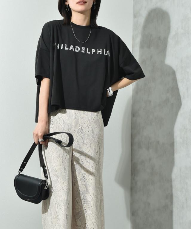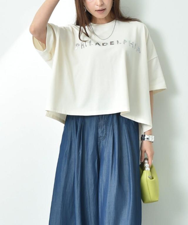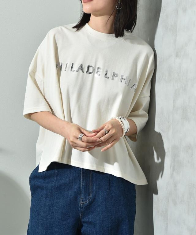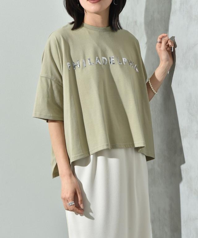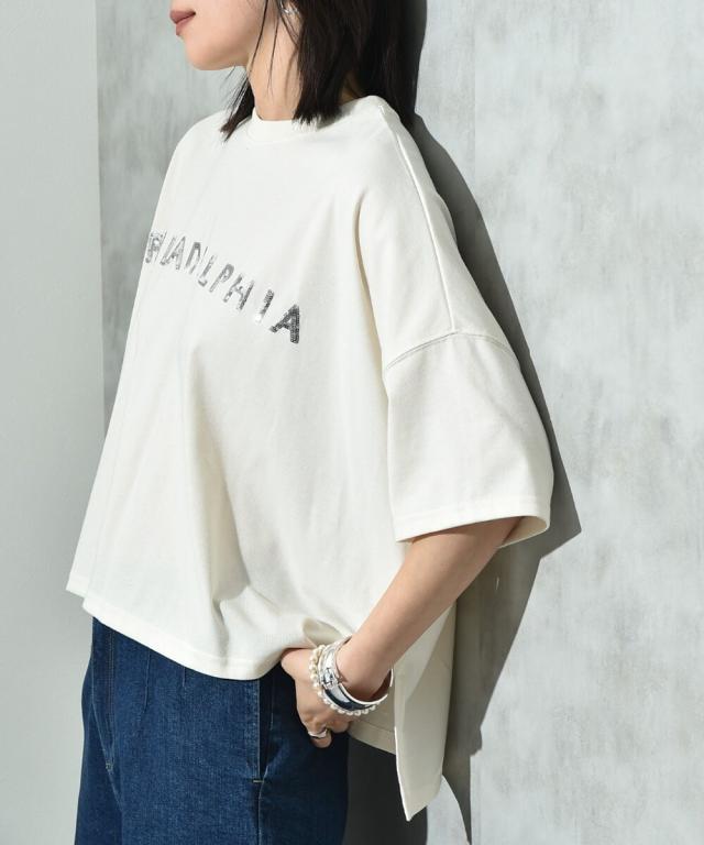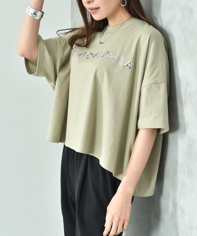 ビッグシルエットスパンコールロゴT