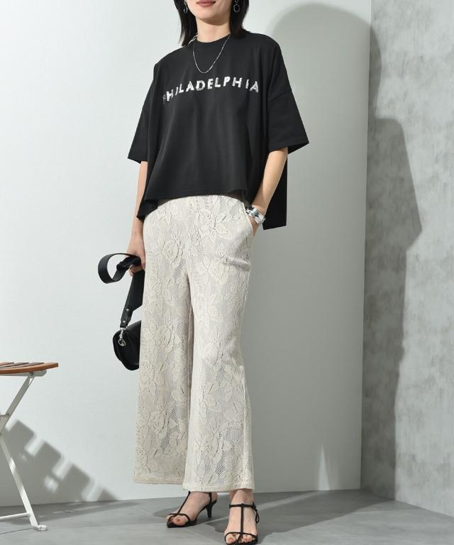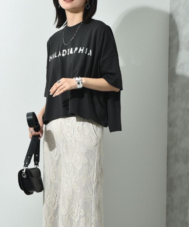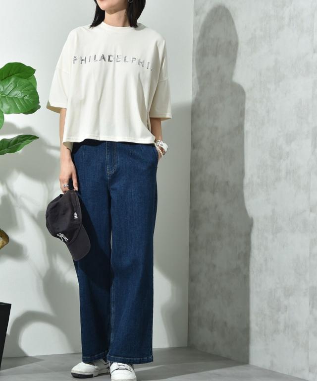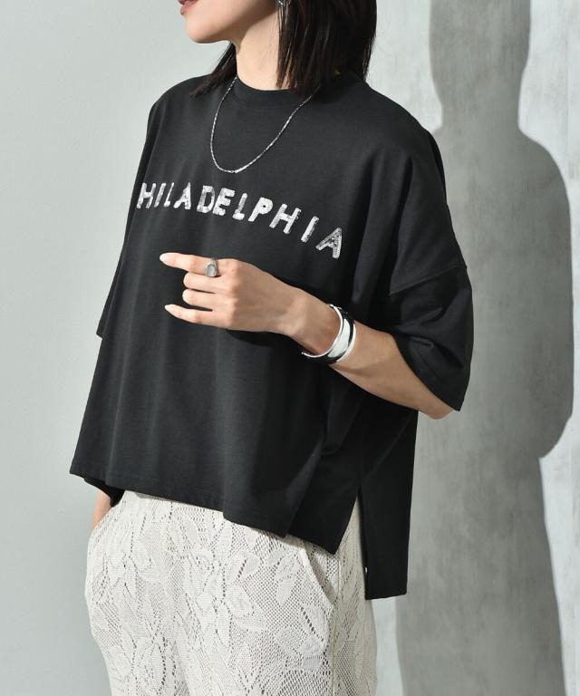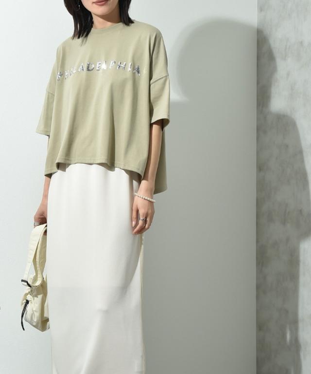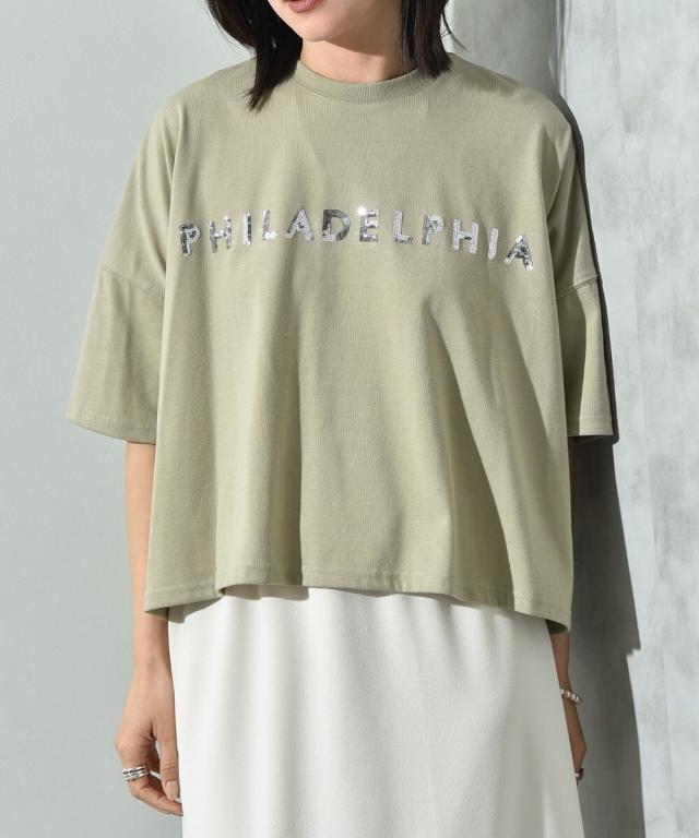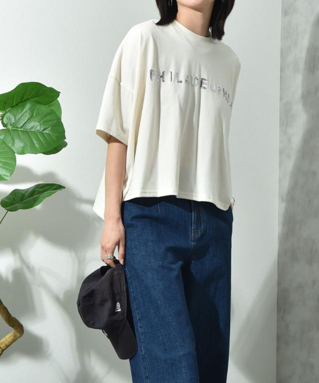 ビッグシルエットスパンコールロゴT