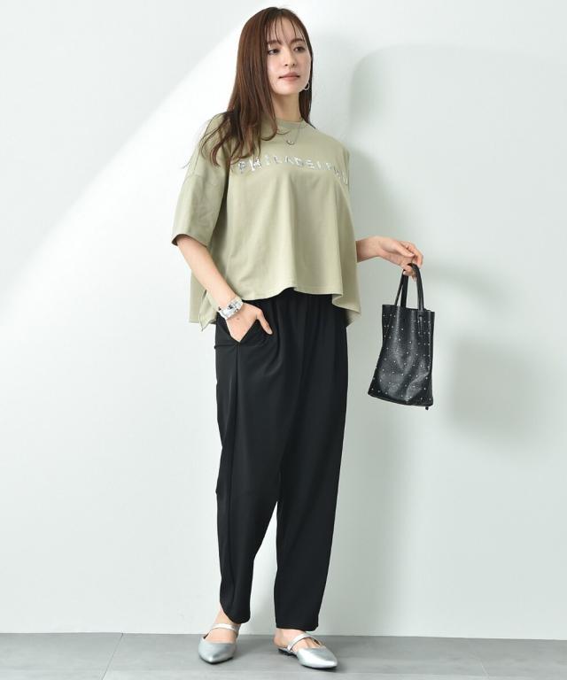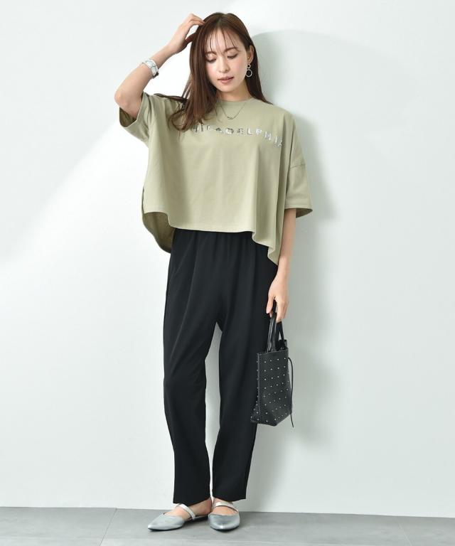 着回しの多いアイテムで質の良いシルケット素材を使用しています。程よい落ち感でよく体になじむのでカジュアルなアイテムながら、キレイ目なスタイルに決まります。またロゴをスパンコールでアレンジし、シンプルなコーディネートにアクセントをプラスしてくれるお勧めな1枚◎大き過ぎない程よいサイズ感で、いつものスタイルをワンランクアップさせてくれます。