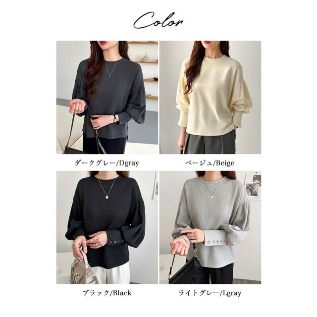 バルーンスリーブカットソー プルオーバートップス オフィスカジュアル カットソー 長袖 レディース