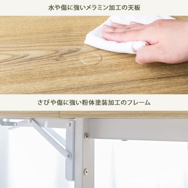 温かみのある木目調の天板と、シャープなスチール脚の組み合わせが、ナチュラルで落ち着いた印象を与えます。