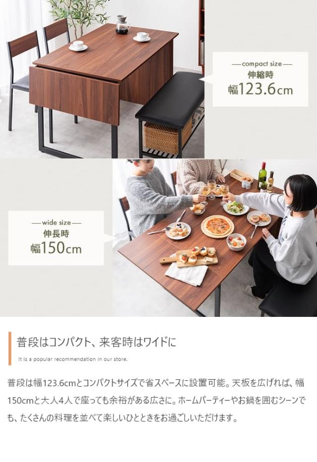 省スペースながら最大150cmまで広げられ、家族の食事やホームパーティーにも対応できます。