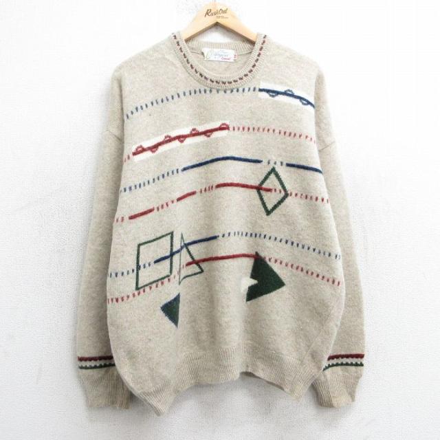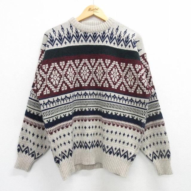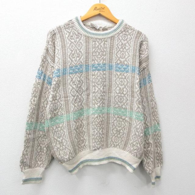 【商品名】 L★古着 ロンドンフォグ 長袖 セーター メンズ 90年代 90s アクリル クルーネック USA製 ベージュ他【spe】