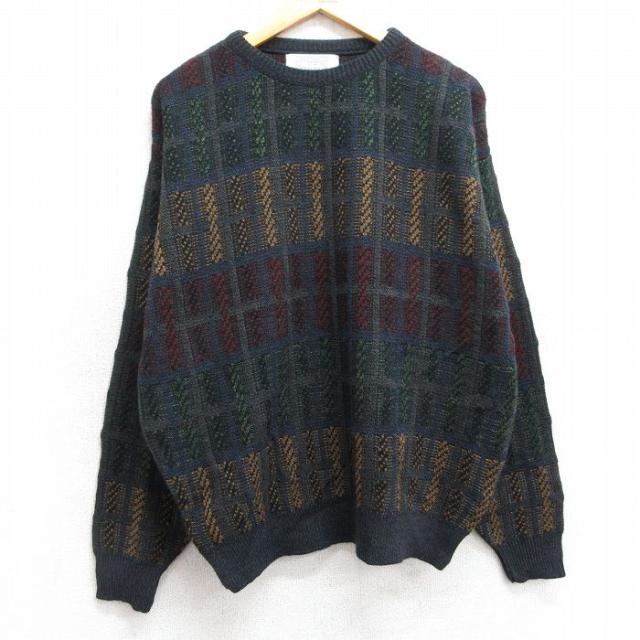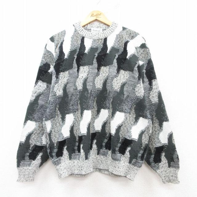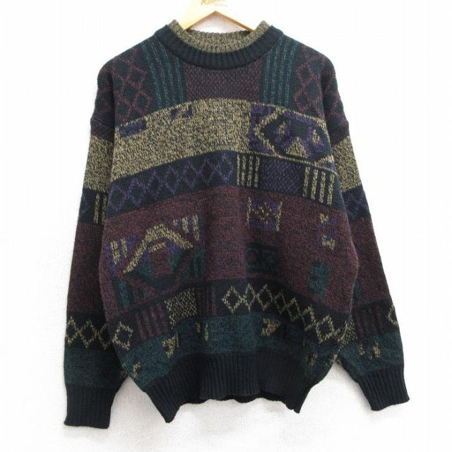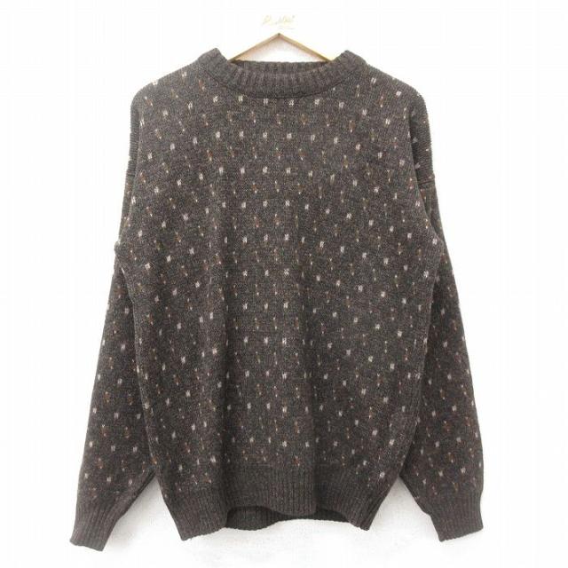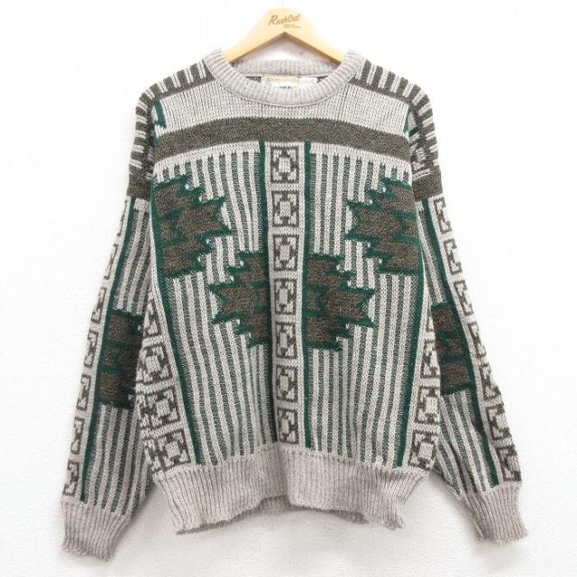古着 ロンドンフォグ 長袖 セーター メンズ 90年代 90s アクリル クルーネック USA製 ベージュ他 カーキ spe Lサイズ 中古 ニ 中古 古着