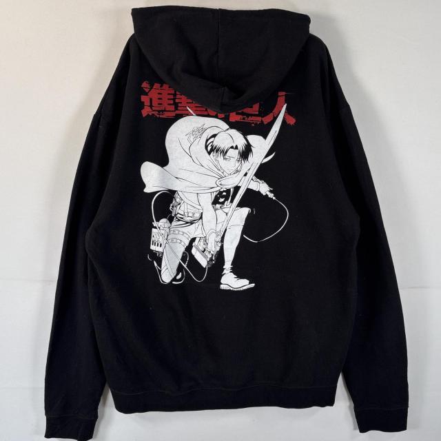 古着 パーカー 進撃の巨人 リヴァイ兵長 調査兵団 アニメスウェット フーディ バックプリント 大きいサイズ XL ブラック メンズ