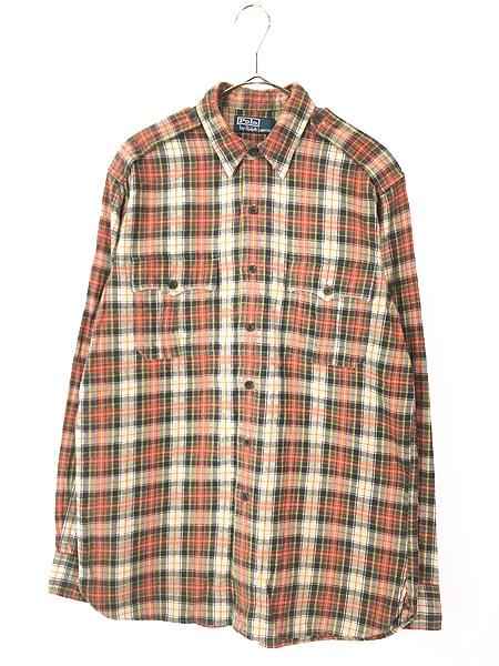 古着 Polo Ralph Lauren マルチ チェック チンスト ポケット マチ付き フランネル シャツ ネルシャツ XL 古着