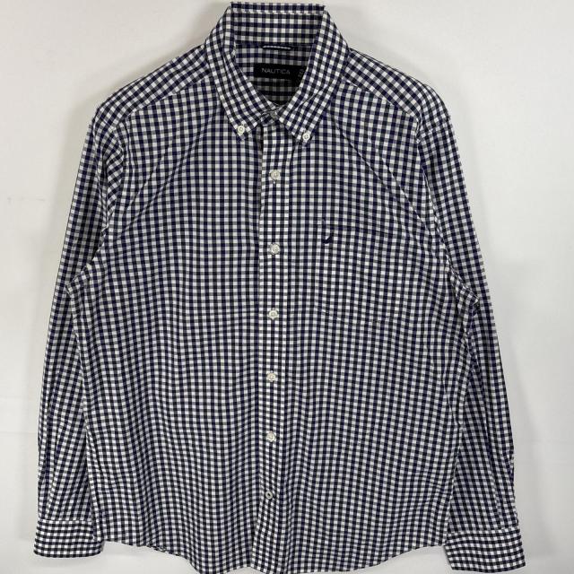 古着 ノーティカ NAUTICA 長袖シャツ ボタンダウンシャツ ワンポイント ロゴ 刺繍 胸ポケ M ネイビー系 チェック メンズ