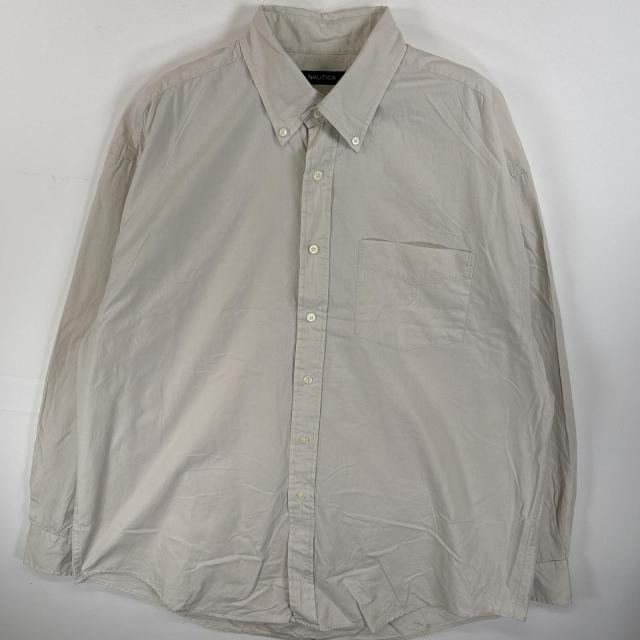 古着 ノーティカ NAUTICA 長袖シャツ ボタンダウンシャツ ワンポイント 刺繍 ロゴ 胸ポケ XL ベージュ系 無地 メンズ