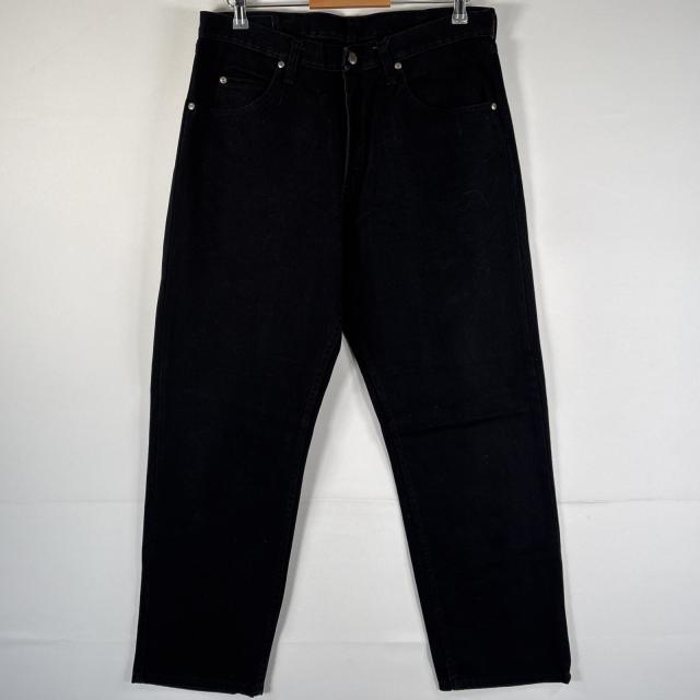 古着 ラングラー Wrangler デニムパンツ ワンポイントロゴ ブラックデニム テーパード コインポケット レザーパッチ w34 L30 ブラック