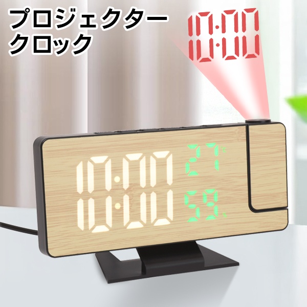 プロジェクター時計 目覚まし時計 デジタル 置き時計 壁に時刻をうつす ウッド調 カレンダー 温度 湿度 表示 夜間モード 大文字 おしゃれ プロジェクタークロック【 新生活 インテリア 寝室 クロック 卓上 誕生日 男性 女性 プレゼント 】 /60N◇ 投影クロック