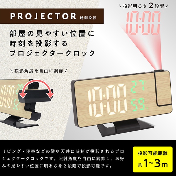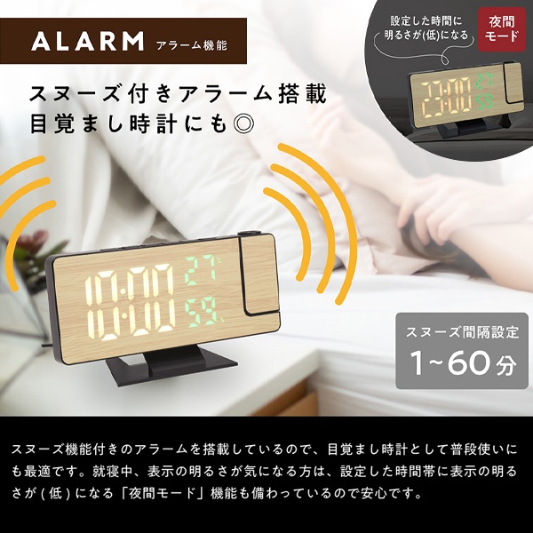 | ウッド調/多機能搭載 プロジェクタークロック | |