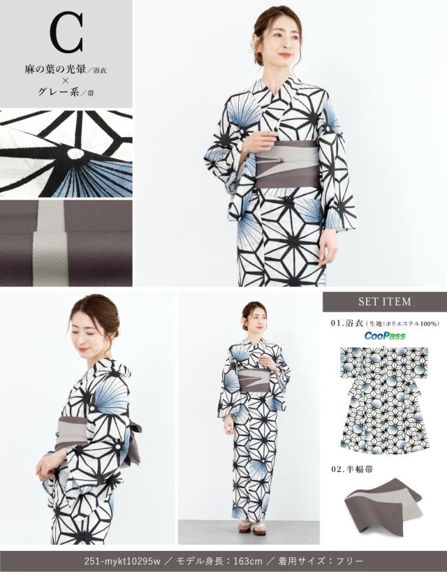 浴衣 セット レディース 浴衣セット 半幅帯 2025 floro 簡単 涼しい コーディネート済み 白 赤茶 紺 灰 ベージュ 30代 40代 50代 S フリー 送料無料
