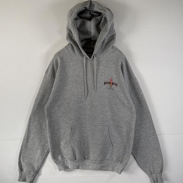 古着 ロンジョン RON JON パーカー フーディー マフポケット ラバープリント 両面プリント サーファー アウトドア M グレー メンズ