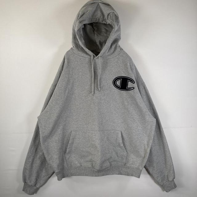 古着 チャンピオン Champion パーカー 大きいサイズ ワンポイントロゴワッペン ビッグロゴ プルオーバーパーカー グレー メンズ