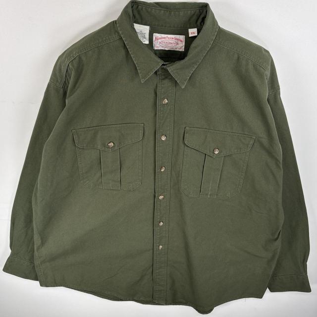 古着 フィルソン FILSON 長袖シャツ フラップポケ USA製 厚手 XXL オリーブグリーン 無地 メンズ