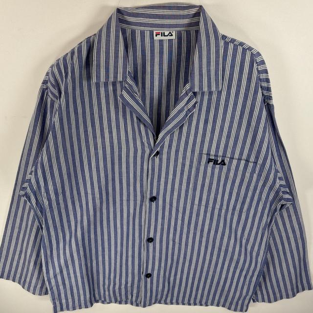 古着 フィラ FILA 長袖シャツ オープンカラー パジャマシャツ ワンポイント 刺繍 ロゴ 不明 ブルー系 ストライプ メンズ
