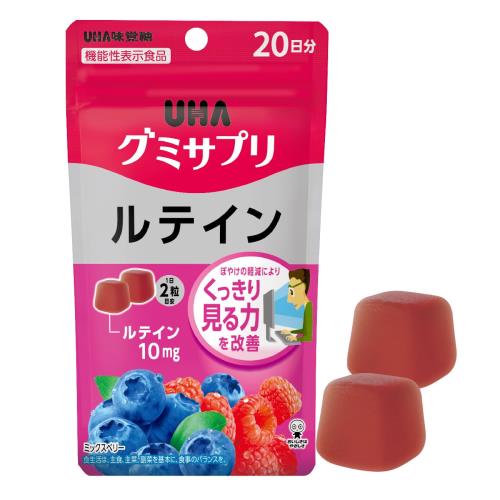 UHA味覚糖 グミサプリ ルテイン ミックスベリー味 20日分 40粒 1日2粒 機能性表示食品 ぼやけの軽減によりくっきり見る力を改善.