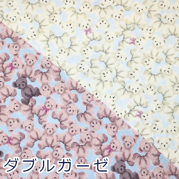 もこもこのくまさんがたくさん並んだかわいい柄のWガーゼです。