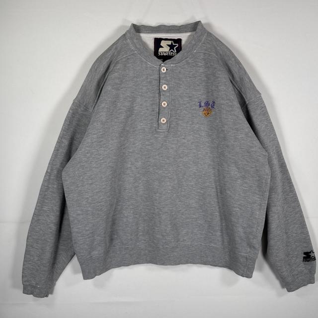 古着 90s/90年代 スターター Starter 長袖 スウェット ワンポイント 刺繍 ロゴ ヘンリーネック トレーナー L グレー メンズ
