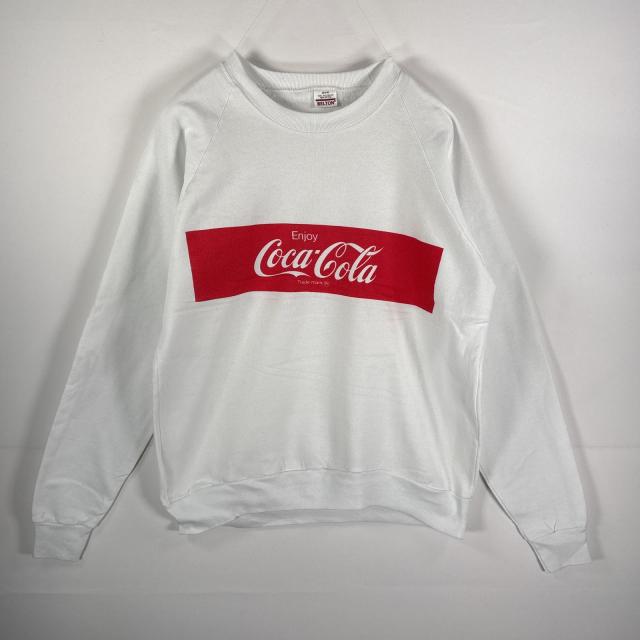 古着 BELTON USA製 スウェット クルーネック 片面プリント コカコーラ 企業ロゴ ラグラン 42L44 ホワイト メンズ