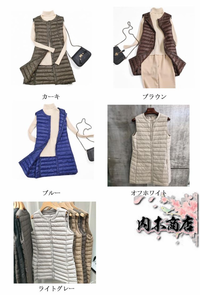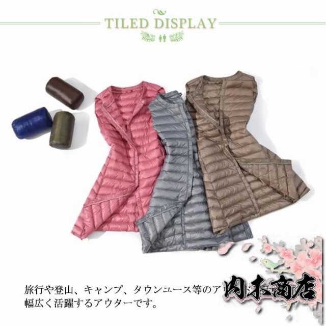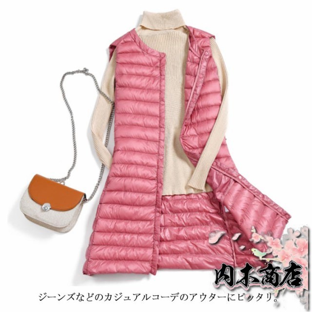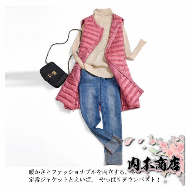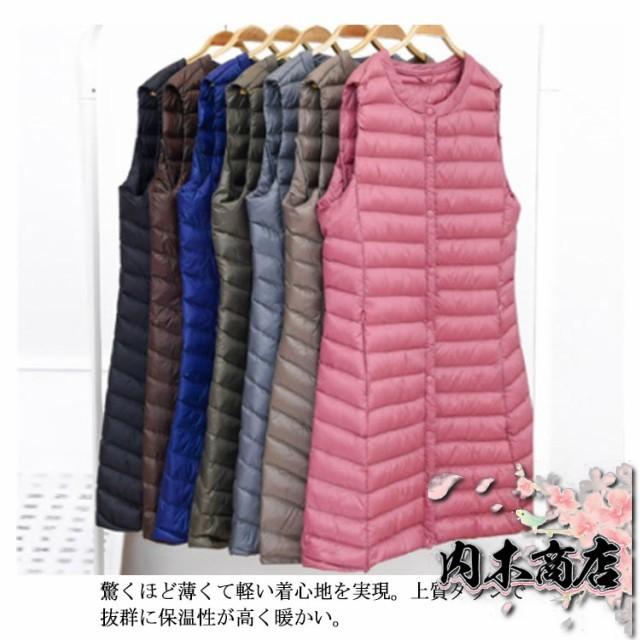 レディース ロングダウンベスト ロング丈 軽量 ダウンコート ノーカラー インナーダウン 超軽量ダウンベスト レディース ライトダウン 無地 アウター ゆったり 大きいサイズ 送料無料