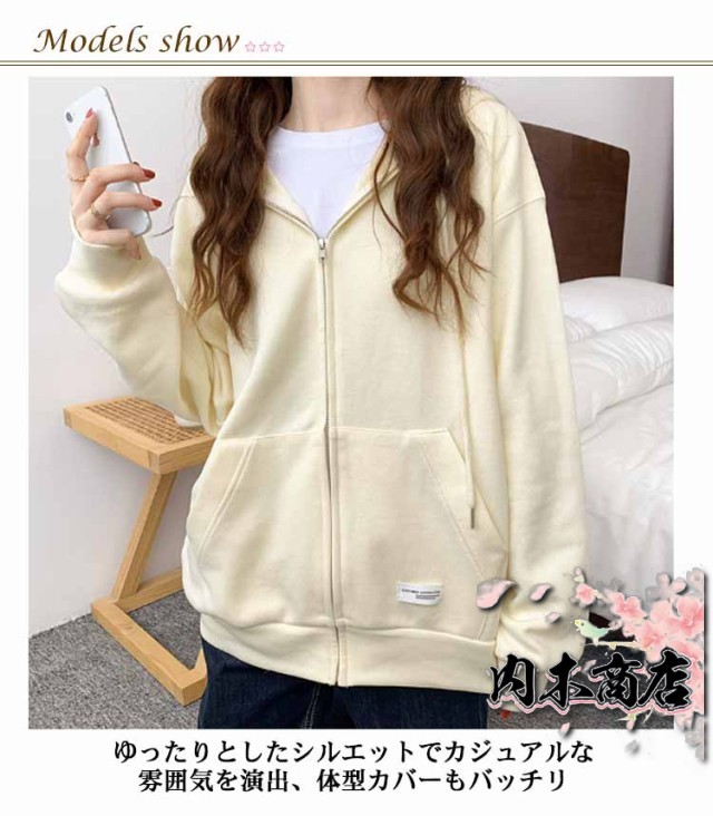【送料無料】パーカー レディース 前開き 無地 スエット ジップパーカー シンプル 長袖 春秋冬 重ね着 おしゃれ 軽い 軽量 可愛い カジュアル 羽織 アウター トップス ゆったり 体型カバー 通勤 通学 定番 ギフト プレゼント
