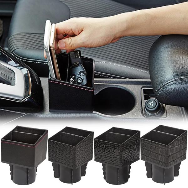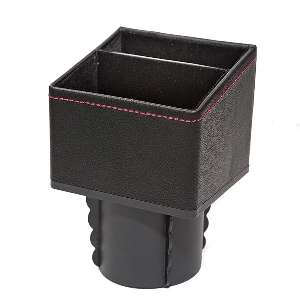 革製中央収納ボックス コンテナ カップホルダー ポケット センターコンソールオーガナイザー キーカード コイン収納