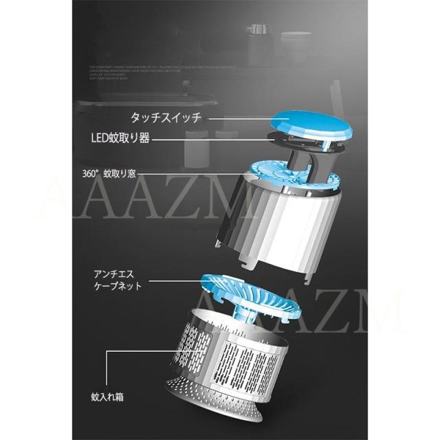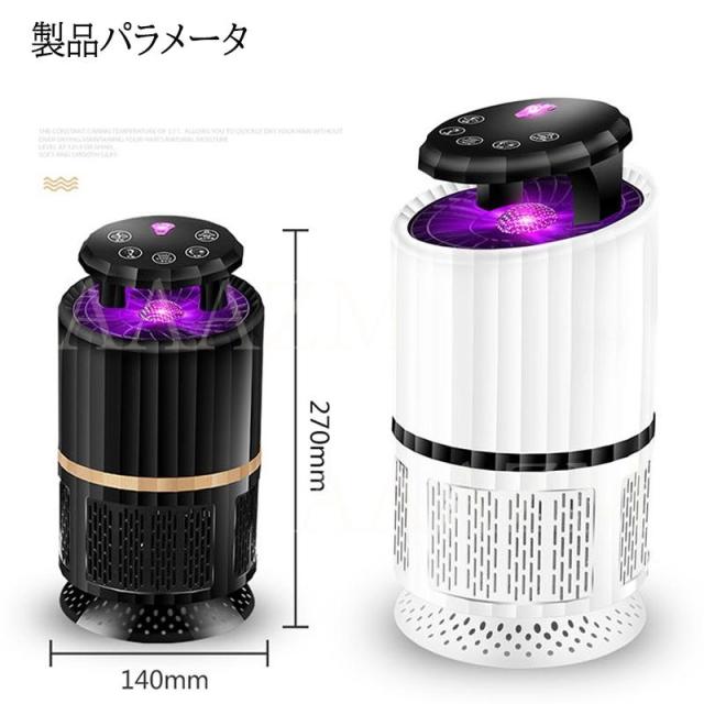 、誘虫灯付き、静音、薬剤なし、高い安全性能、366nm紫外線、10mまでリモコン操作可能、34dB、バイオニック二酸化炭素誘虫、360°全方位スキャナーしたりして蚊などを誘惑します