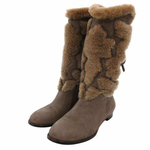 【中古】コブラ COBRA ムートンブーツ ロング レザー リボンデザイン 37 グレージュ /FF レディース
