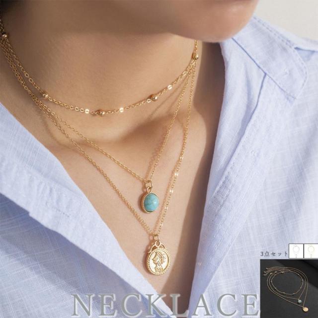 日々のコーデにお洒落感をアップする3点セットになったチェーンネックレス