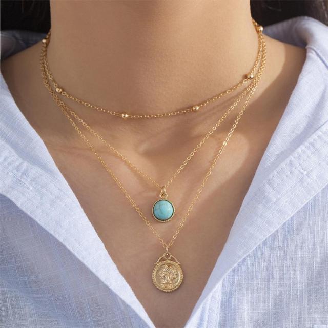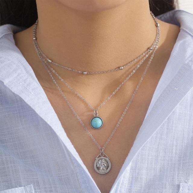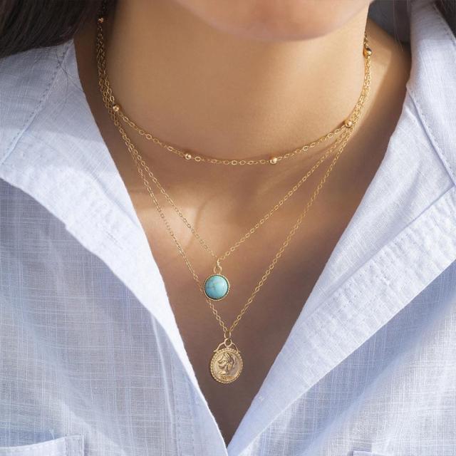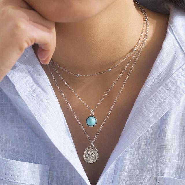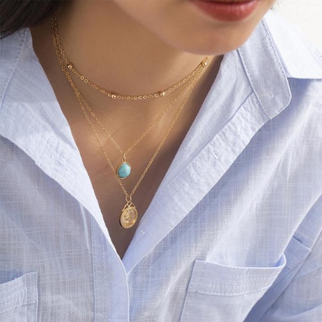 韓国ファッション アクセサリー ターコイズネックレス レディース 可愛い リゾート風 10代 組み合わせ 単品使い 女子