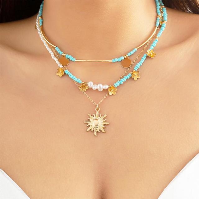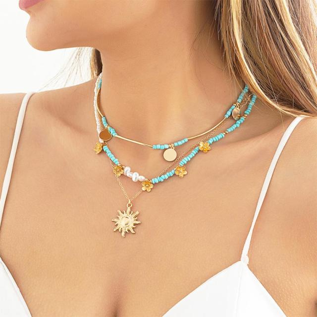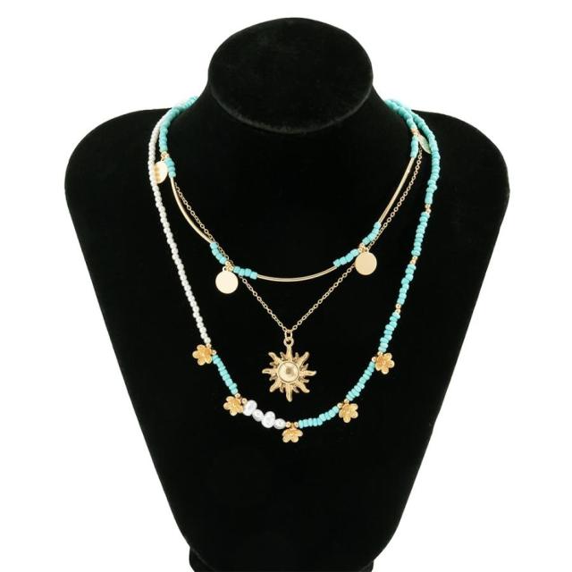ネックレス リゾート風 アクセサリー 韓国ファッション レディース デザインが異なる 組み合わせ 細めチェーン パール