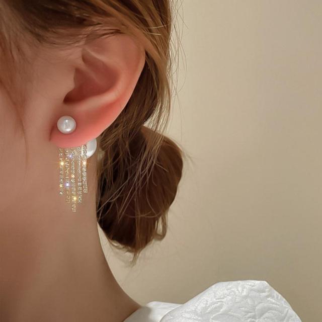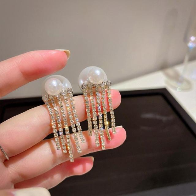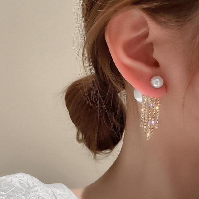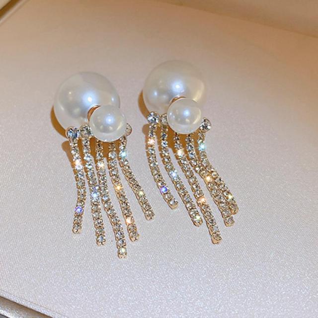 おしゃれ パーティーピアス キラキラ ラインストーン 揺れる 結婚式アクセサリー 韓国 パールバックキャッチ ピアス上品