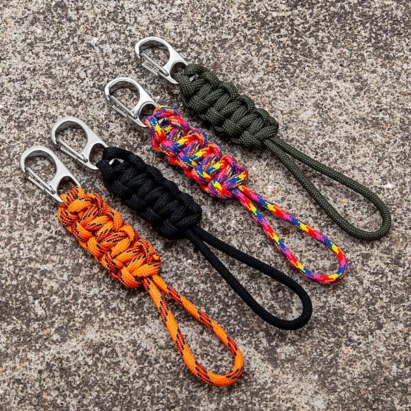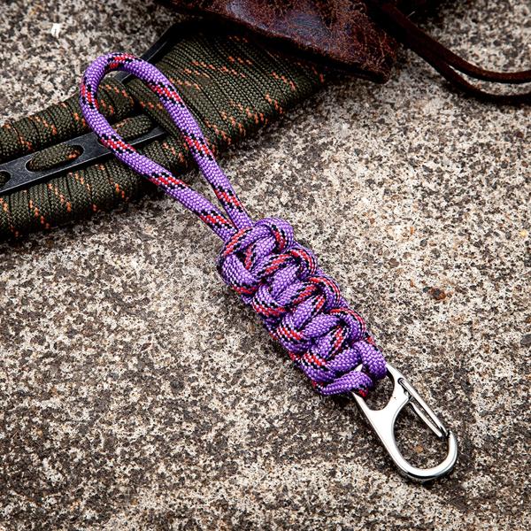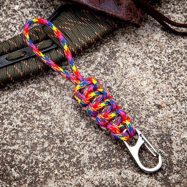 MKENDN 軍事編組パラコードカラビナキーホルダー屋外緊急サバイバルバックパック自己防衛キーリングストラップ