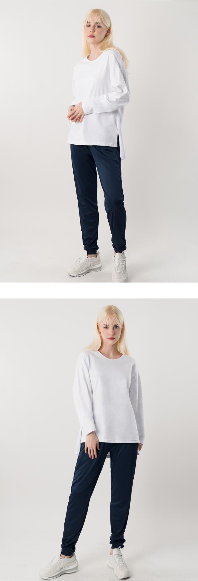 裾バンディング仕様で足首へのストレスを軽減し安定した履き心地が得られるため、
