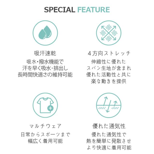 吸汗速乾機能が汗を素早く吸収・乾燥させ、常に快適な着用感を提供。