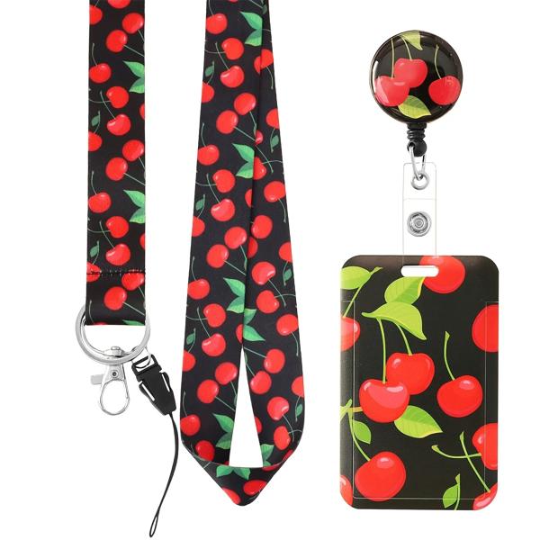 キー用ネックストラップ付き電話ストラップ、格納式IDバッジホルダー、クレジットカード用キーホルダー、チェリーブレイクアウェイ