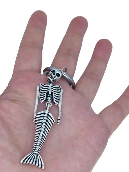 ラウンドスナップスプリングカラビナリング、ゴシックスケルトン、スカル、マーメイドチャームキーホルダー、28mm